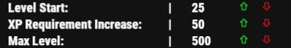 - XP Requirement Increase: This is the amount of XP a player must earn to reach the next level after reaching level 1. This is a progressive amount that increase each time a player reaches the next level.