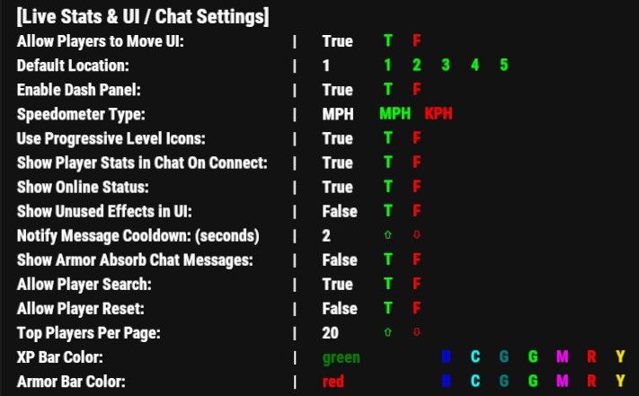 - Armor Bar Color: This color selection will change the appearance of the Armor bar within all players LiveStatsUI