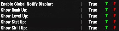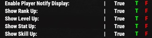 - These options will enable or disable the notify UI bar for the listed actions that appears at the top of a players screen. This is for the player only to see.