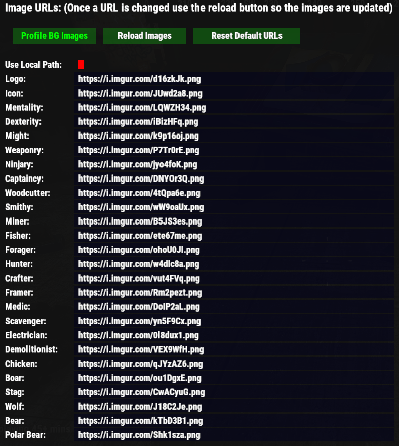 - This option allows you to enter remote URLs for each image that point to a remote host that has all the images. This will require a full URL to every image Example: Mentality Icon (https://www.rustlevels.com/gameimages/mentality.png)